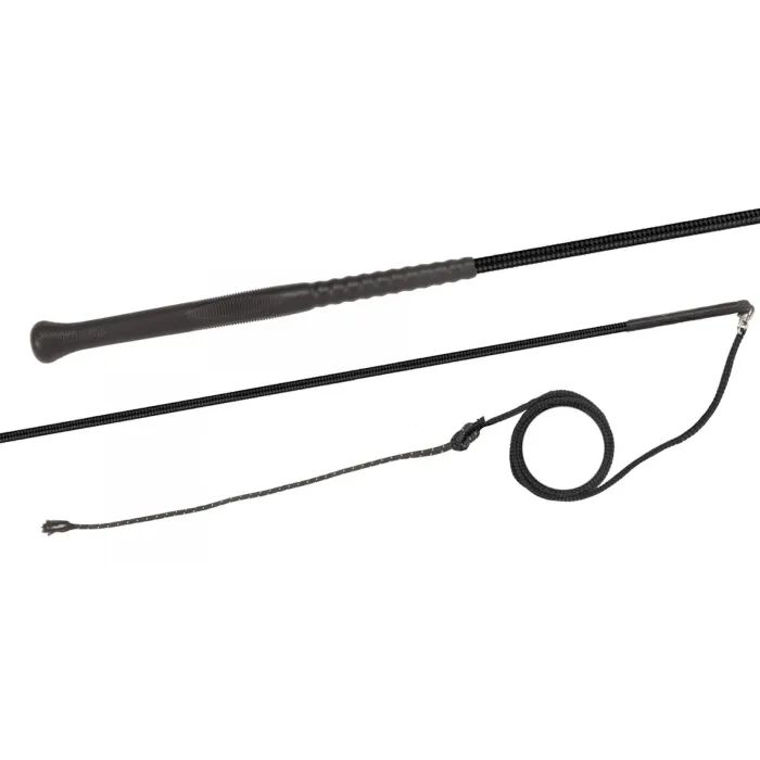 Bat do lonżowania Fleck rączka ERGO to solidny wybór dla jeźdźców, którzy cenią sobie wygodę i trwałość podczas pracy z koniem. Wykonany z wytrzymałego włókna szklanego, zapewnia elastyczność i odporność na uszkodzenia. Powierzchnia bata pokryta jest plecionym nylonem, co zwiększa jego trwałość i estetyczny wygląd. Na uwagę zasługuje ergonomiczna rączka ErgoGrip, która jest antypoślizgowa i doskonale leży w dłoni. Dzięki temu bat pewnie się trzyma, nawet podczas intensywnego treningu. Całość jest solidnie i precyzyjnie wykonana, co potwierdza renomę marki Fleck. To praktyczne rozwiązanie w przystępnej cenie – idealne dla każdego jeźdźca.