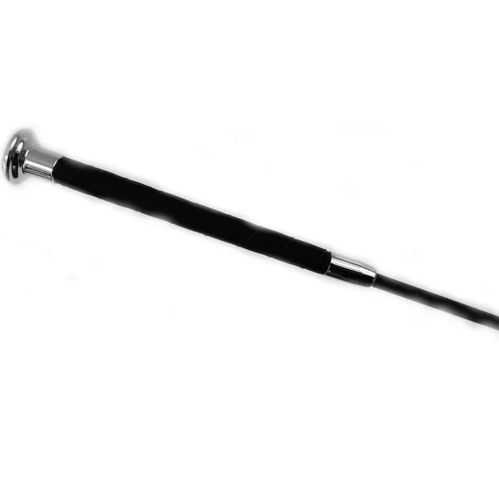 Rączka tego bata została wykończona materiałem, który przypomina zamsz i jest niezwykle przyjemny w dotyku. Taki uchwyt zapewnia pewny i stabilny chwyt, co ma duże znaczenie podczas ujeżdżenia. Dodatkowo rączka nie ślizga się w dłoni, co zwiększa bezpieczeństwo użytkowania. Komfort i funkcjonalność idą tu w parze. To detal, który naprawdę robi różnicę.