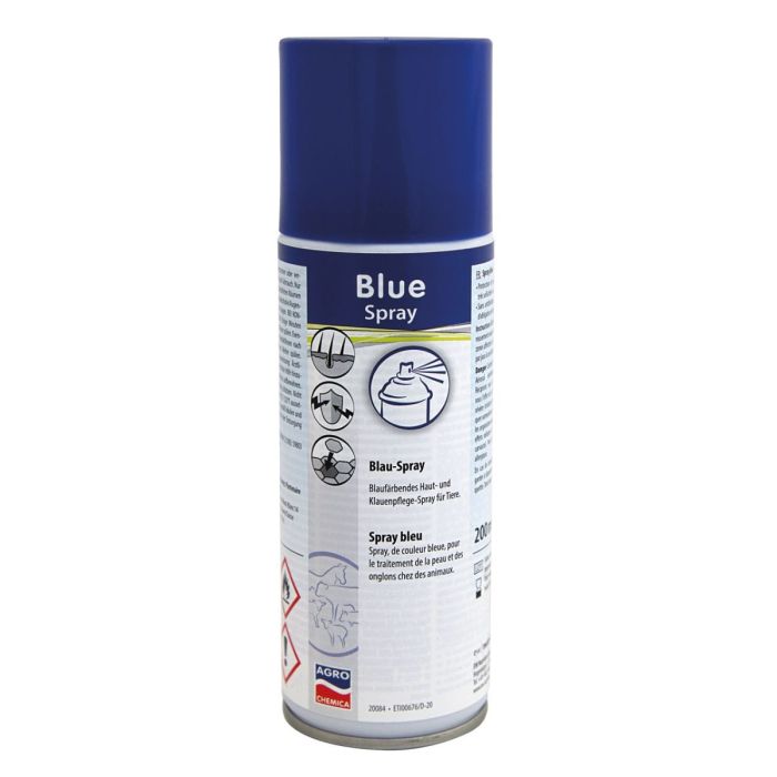 Intensywnie niebieski spray pozwala na widoczną i pełną pielęgnację skóry, kopyt i racic. Chroni mocno obciążone i wrażliwe obszary, takie jak stawy skokowe i obszary między racicami. Poprawia zdolność skóry do zatrzymywania wilgoci, dzięki czemu skóra (także blizna) ponownie staje się jędrna i elastyczna.  Zawarty w Blue Spray’u:  deks-pantenol odgrywa kluczową rolę w regeneracji naskórka podczas gojenia się ran; karwakrol (naturalny olejek z oregano) hamuje rozwój grzybów, wirusów i bakterii.
