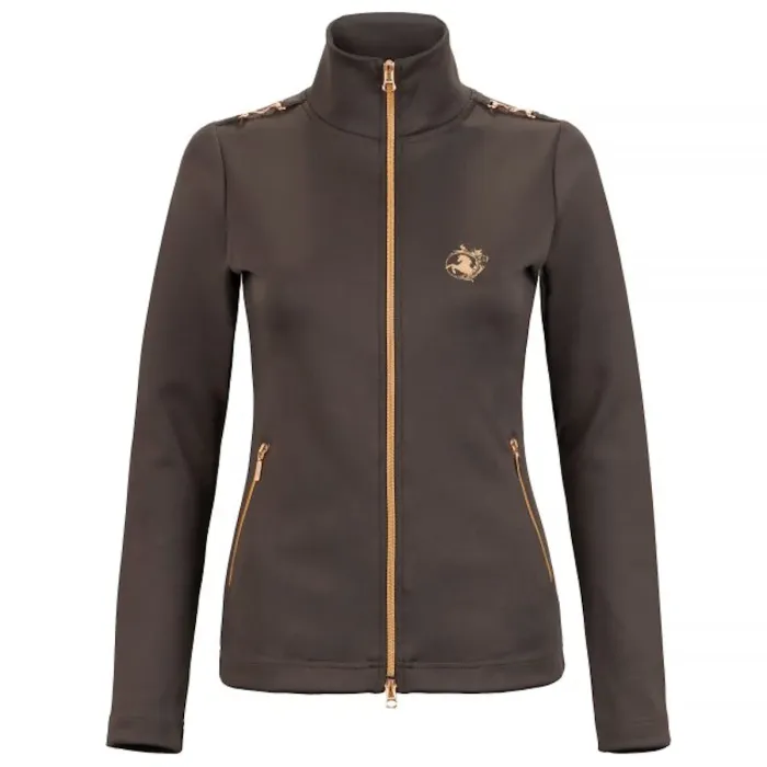 Bluza damska Equestrian Queen Henrietta 23AW to połączenie elegancji i wygody, stworzone z myślą o wymagających miłośniczkach jeździectwa. Uszyta z materiału technicznego, który zapewnia doskonałe dopasowanie do ciała, elastyczność oraz komfort termiczny. Model cechuje się oddychalnością i rozciągliwością, co czyni go idealnym do jazdy konnej i aktywności na świeżym powietrzu. Bluza została wzbogacona o dwustronny zamek w kolorze rosegold, który nie tylko zwiększa funkcjonalność, ale także dodaje charakteru. Stylowe metalowe wędzidła i printy w pasujących odcieniach podkreślają jeździecki styl. To model, który doskonale łączy nowoczesne właściwości materiałowe z eleganckim wykończeniem. Idealny wybór na trening, spacer po stajni czy codzienne użytkowanie.