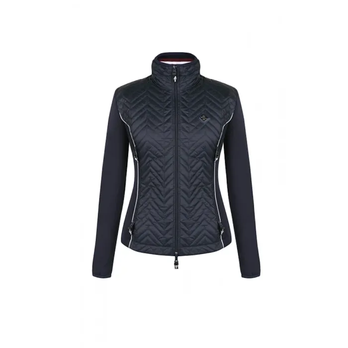 Bluza damska hybrydowa Fair Play Shia to funkcjonalne połączenie wygody i ochrony przed niekorzystnymi warunkami atmosferycznymi. Wykonana z elastycznego materiału pokrytego teflonowym nadrukiem, skutecznie chroni przed wilgocią i zabrudzeniami. Pikowane panele dodatkowo zabezpieczają przed wiatrem, a ciepła stójka ze ściągaczem zwiększa komfort termiczny. Praktyczne rozwiązania, takie jak dwie dwukomorowe kieszenie i kryte suwaki z tyłu, ułatwiają codzienne użytkowanie, zwłaszcza w siodle. Dodatkowo odblaskowe elementy poprawiają widoczność po zmroku, zwiększając bezpieczeństwo podczas jazdy. Model Shia łączy nowoczesny wygląd z praktycznymi detalami, idealnie wpisując się w potrzeby aktywnych kobiet.