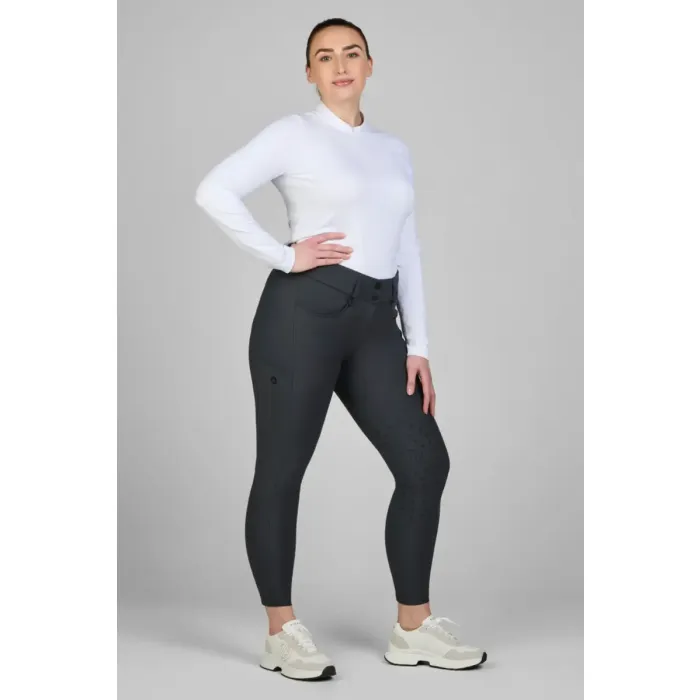 Bryczesy damskie Pikeur Amia SD to nowoczesny model, który łączy w sobie funkcjonalność i elegancję. Wykonane z materiału Flextech o 4-kierunkowym rozciąganiu, zapewniają pełną swobodę ruchów i komfort podczas jazdy konnej. Oddychająca, szybkoschnąca tkanina chroni przed przegrzaniem, a dodatkowo oferuje ochronę przed promieniowaniem UV. Średni stan ze szerokim pasem i pętlami na pasek gwarantuje pewne trzymanie i doskonałe dopasowanie do sylwetki. Konstrukcja bez szwów na kolanach eliminuje ryzyko otarć, a łatki z nadrukiem sitodrukowym na kolanach poprawiają stabilność w siodle. Spodnie do jazdy konnej wyposażono także w zaokrąglone kieszenie oraz boczne paski ze zintegrowaną kieszenią na telefon komórkowy, co podnosi ich praktyczność. Podwinięte końce nogawek i subtelne detale Pikeur Athleisure dodają całości nowoczesnego, sportowego charakteru. To idealne bryczesy do jazdy konnej, które spełnią oczekiwania wymagających amazonek.