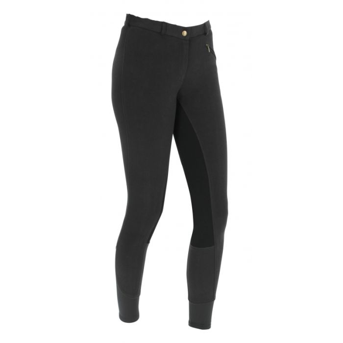 Bryczesy damskie Covalliero Economic to wygodne i funkcjonalne spodnie jeździeckie, które łączą klasyczny styl z nowoczesnym komfortem użytkowania. Dzięki dopasowanemu krojowi z 4-kierunkowym streczem, idealnie układają się na sylwetce i zapewniają swobodę ruchów podczas jazdy. Model wykonany jest z naturalnej tkaniny bawełnianej, która dobrze oddycha i przyjemnie przylega do skóry. Antypoślizgowy, elastyczny pas ze szlufkami pomaga utrzymać spodnie w odpowiedniej pozycji, zapewniając komfort przez cały dzień. Całość uzupełniają praktyczne kieszenie, które sprawdzą się do przechowywania drobiazgów. Covalliero Economic to idealny wybór dla początkujących i rekreacyjnych jeźdźczyń szukających dobrego stosunku jakości do ceny.