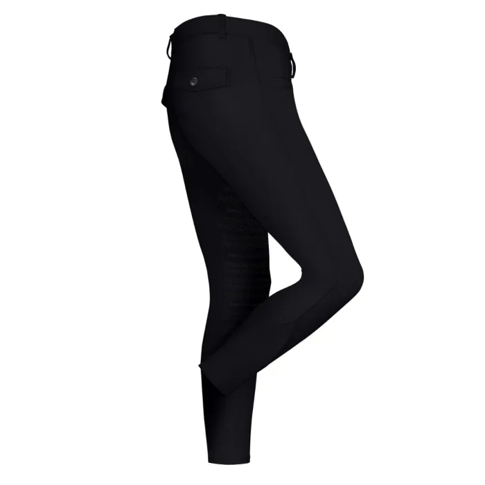 Bryczesy wyposażono w silikonowy lej kolanowy, który gwarantuje pewne trzymanie się w siodle. Dzięki niemu jeździec zyskuje większą stabilność i kontrolę nad ruchem. Lej jest odporny na ścieranie i zachowuje swoje właściwości przez długi czas. To ważne podczas intensywnych treningów. Funkcjonalność połączona z trwałością.