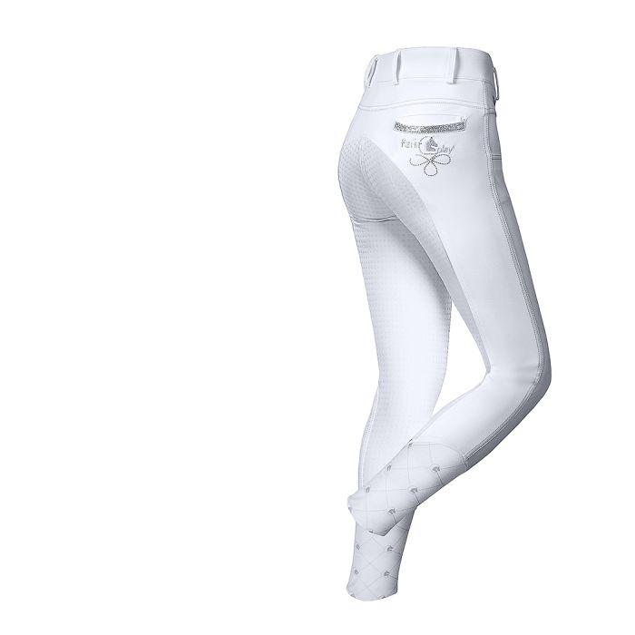 Bryczesy damskie Fair Play Jilliane to model zaprojektowany z myślą o kobietach, które cenią sobie elegancję, komfort i funkcjonalność podczas jazdy konnej. Spodnie wyposażone są w pełny lej ¾ wykonany w technologii COMFiSTICK, który zapewnia trwałą przyczepność do siodła oraz większą stabilność w czasie jazdy. Elastyczne zakończenie nogawek gwarantuje idealne dopasowanie do butów jeździeckich i eliminuje ucisk. Dzięki zastosowaniu elastycznych materiałów, bryczesy oferują pełną swobodę ruchów, co jest kluczowe przy intensywnym treningu. Całość uzupełniają subtelne, kobiece zdobienia, które nadają spodniom wyjątkowego charakteru. Fair Play Jilliane to idealny wybór dla amazonek poszukujących stylowych i wygodnych bryczesów do jazdy konno