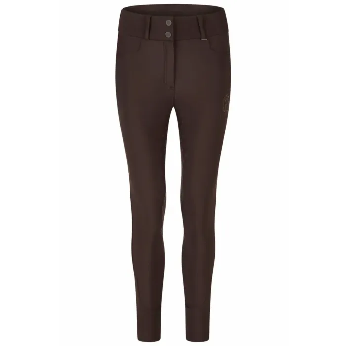 Wysoki pas ze szlufkami pięknie podkreśla talię i wspiera utrzymanie prawidłowej postawy w siodle. W połączeniu z eleganckim guzikiem Heritage i subtelnym emblematem z tyłu, nadaje spodniom wyjątkowego, kobiecego charakteru. To rozwiązanie, które czyni te bryczesy damskie równie stylowymi, co funkcjonalnymi.