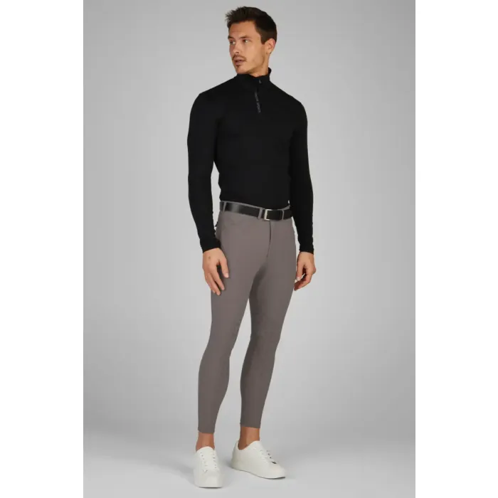 Bryczesy męskie Pikeur New Rodrigo SD to połączenie sportowej funkcjonalności i elegancji, które doceni każdy jeździec. Wykonane z lekkiej, oddychającej i szybkoschnącej tkaniny, gwarantują komfort nawet podczas intensywnego treningu w ciepłe dni. Dzięki 4-kierunkowemu stretchowi oraz wysokiemu pasowi bryczesy zapewniają pełną swobodę ruchów i stabilne dopasowanie. Konstrukcja bez szwów na kolanach minimalizuje ryzyko otarć, a sitodrukowe łaty zwiększają przyczepność w siodle. Dodatkowym atutem są praktyczne kieszenie – dwie rozcięte oraz dwie z klapką zapinaną na zatrzask, ozdobione subtelnymi etykietami transferowymi Pikeur. Podwinięte końce nogawek z odpowiednimi szwami ułatwiają zakładanie bryczesów i zapewniają komfort w butach jeździeckich. Bryczesy jeździeckie z tej kolekcji łączą nowoczesne technologie, ochronę przed promieniowaniem UV oraz estetyczny wygląd, czyniąc je doskonałym wyborem na trening i zawody. To niezawodne spodnie do jazdy konnej, które łączą styl i praktyczność.