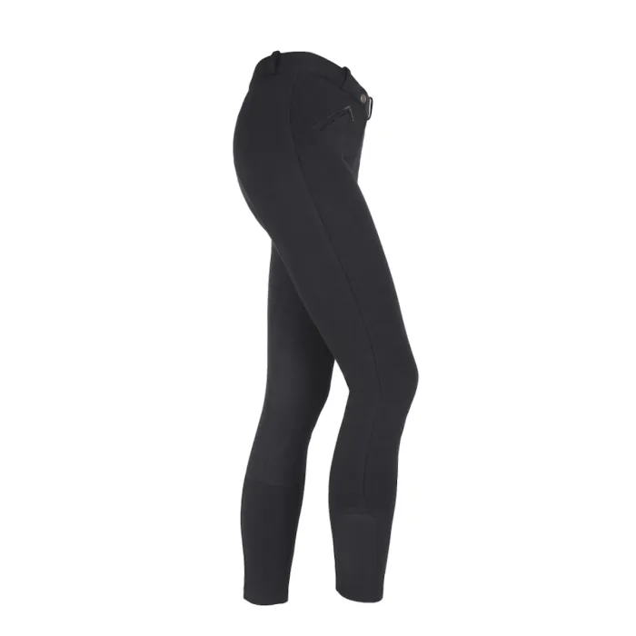 Dzięki elastycznemu zakończeniu nogawek bryczesy dobrze przylegają do nogi i nie przesuwają się podczas jazdy. Taki detal ułatwia także zakładanie spodni i sprawia, że lepiej dopasowują się do butów jeździeckich. Elastyczne wstawki nie powodują ucisku, co ma znaczenie szczególnie podczas dłuższych treningów. Komfort użytkowania pozostaje na wysokim poziomie przez cały dzień. To praktyczne i cenione rozwiązanie w odzieży jeździeckiej.