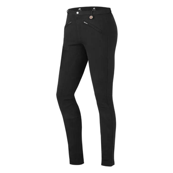 Bryczesy posiadają dwie przednie kieszenie na zamek oraz osobną kieszonkę na telefon, co pozwala bezpiecznie przechowywać niezbędne drobiazgi. Funkcjonalne rozmieszczenie kieszeni sprawia, że są łatwo dostępne i nie krępują ruchów podczas jazdy. Zamki chronią zawartość przed wypadnięciem nawet w trakcie dynamicznego treningu. To rozwiązanie praktyczne i cenione przez aktywnych jeźdźców. Kieszenie zwiększają funkcjonalność modelu na co dzień.
