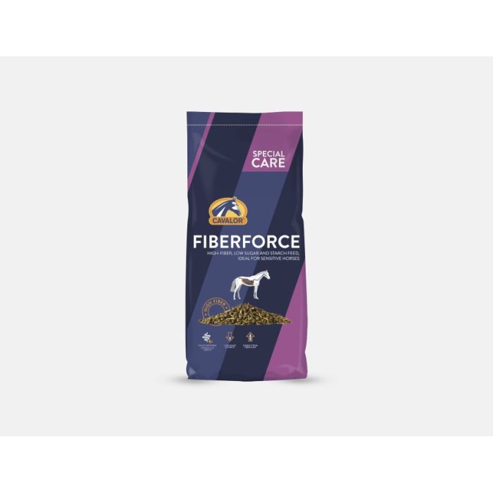 Cavalor FiberForce jest wysokobłonnikową mieszanką z długimi włóknami dla zdrowego funkcjonowania żołądka i jelit. Ta niskocukrowa (5%), niskoskrobiowa (3%) mieszanka pomaga utrzymać poziom glukozy i insuliny we krwi oraz jest bezpieczna dla koni podatnych na zaburzenia metaboliczne.