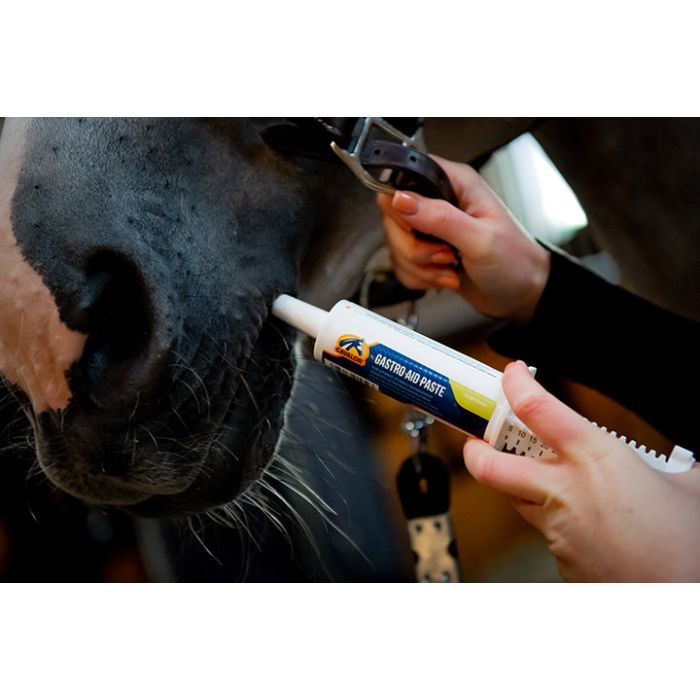 Cavalor Gastro Aid Paste zawiera zioła i kultury drożdży, które chronią ściany żołądka i pomagają neutralizować kwas żołądkowy, nie dopuszczając do jego uszkodzeń. Cavalor Gastro Aid przyspiesza również proces gojenia, gdy doszło już do uszkodzenia ścian żołądka.