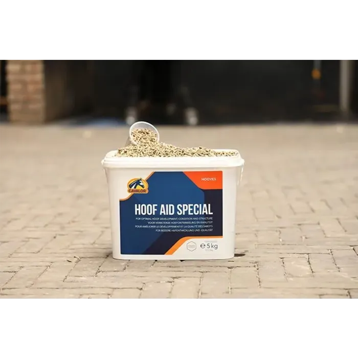 Cavalor Hoof Aid Special dostarcza co powyżej 30 mg biotyny dziennie, czyli ilość uznawaną za skuteczną przy problemach z kopytami. Biotyna wspiera wzrost rogu kopytowego oraz poprawia jego strukturę i odporność na uszkodzenia. Jest to jeden z kluczowych składników suplementu na kopyta dla koni