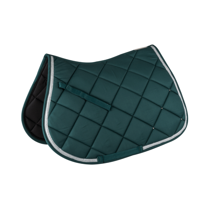 Elegancki, wysokiej jakości czaprak z brokatową wstążką. Dodatkowe błyszczące kamienie sprawiają, że ten czaprak naprawdę przyciąga wzrok. Funkcjonalny spód zapewnia optymalną oddychalność. Najlepszy rozkład nacisku zapewniają pianka o grubości 8 mm i wata o gramaturze 250 g/m². Materiał zewnętrzny: 75% poliester, 25% bawełna. Podszewka: 100% poliester. Wypełnienie: 100% poliester, pianka: 100% poliuretan.