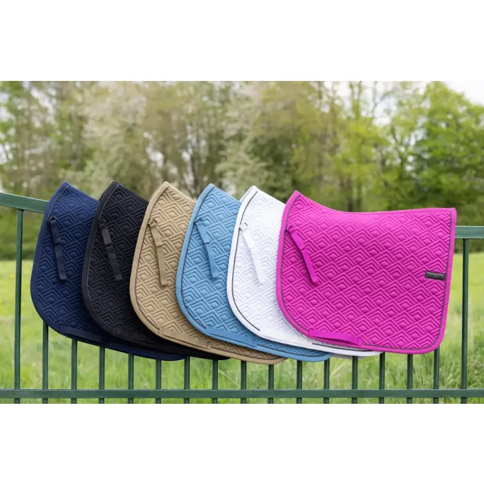 Czaprak Covalliero S/S 2026 to połączenie ponadczasowego designu i funkcjonalności, które sprawdza się zarówno podczas codziennych treningów, jak i startów w zawodach. Ten czaprak dla konia został zaprojektowany z myślą o komforcie konia oraz estetyce całego zestawu jeździeckiego. Nowoczesny, dopracowany wygląd podkreśla styl każdej pary jeździec–koń i doskonale komponuje się z aktualnymi kolekcjami sprzętu jeździeckiego. Miękka spodnia warstwa zapewnia wysoką oddychalność oraz skuteczne odprowadzanie wilgoci z grzbietu konia, co zwiększa komfort podczas jazdy. Wypełnienie z pianki i poliestru pomaga równomiernie rozłożyć nacisk pod siodłem, poprawiając amortyzację. Dzięki temu czapraki Covalliero sprawdzają się podczas dłuższych treningów oraz intensywnej pracy. Anatomiczny kształt czapraka dobrze dopasowuje się do grzbietu konia i pozostaje stabilny pod siodłem. Dodatkowe paski do siodła i popręgu zapinane na rzep ułatwiają prawidłowe ułożenie czapraka. Czaprak wszechstronny Covalliero S/S 2026 można prać w temperaturze 30°C, co ułatwia utrzymanie go w czystości.