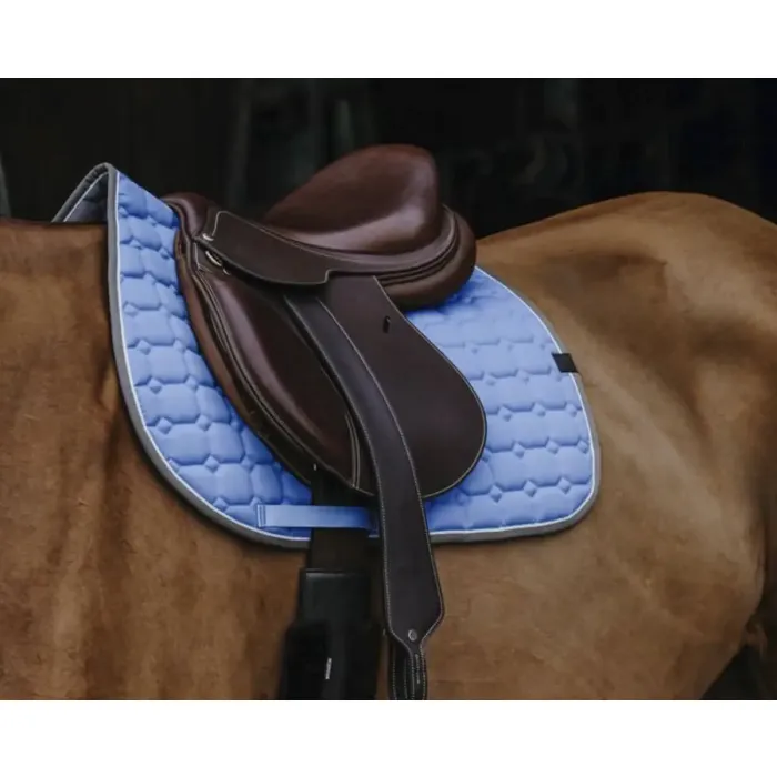 Pikowanie w ośmiokątny wzór to charakterystyczny element modelu Orion, który wpływa na równomierne rozmieszczenie wypełnienia. Taka struktura zapobiega przesuwaniu się materiału i wspiera komfort konia podczas jazdy. Dzięki niemu czaprak lepiej dopasowuje się do kształtu grzbietu. Wzór ten dodaje również nowoczesnego akcentu wizualnego.
