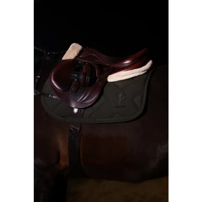 Czaprak Eskadron Softshell Bicross Dynamic 25 A/W to połączenie nowoczesnej technologii i eleganckiego designu. Wierzchnia warstwa z materiału softshell jest wytrzymała i odporna na codzienne użytkowanie, a jednocześnie prezentuje się wyjątkowo stylowo. Od spodu zastosowano podszycie Cool-Dry, które szybko odprowadza wilgoć i zapewnia oddychalność nawet podczas intensywnego treningu. Gładkie pikowanie ze średnio grubym wypełnieniem gwarantuje komfort konia oraz stabilne ułożenie siodła. Dodatkowe wstawki z materiału bicross nadają sportowego charakteru, a silikonowe nadruki zapobiegają przesuwaniu się siodła. Kanał z siateczki mesh wzdłuż grzbietu poprawia cyrkulację powietrza i chroni przed przegrzaniem. To czaprak dla konia, który łączy trwałość, komfort i elegancki wygląd.
