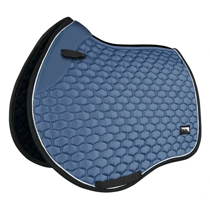 Czaprak VSS Fair Play JET Sport to starannie zaprojektowany czaprak jeździecki, który łączy wygodę, estetykę i nowoczesne rozwiązania materiałowe. Jego anatomiczny kształt zapewnia doskonałe dopasowanie do grzbietu konia, minimalizując ryzyko przesuwania się podczas jazdy. Wewnętrzna warstwa z szybkoschnącego, siateczkowego materiału skutecznie odprowadza wilgoć i wspomaga wentylację. Dodatkowo, linia grzbietowa z siatki 3D air mesh poprawia cyrkulację powietrza i odprowadzanie ciepła. Eleganckie pikowanie nadaje całości sportowego charakteru, a detale takie jak podwójny sznur i naszywka z logo dopełniają stylowego wyglądu. Model dostępny jest w różnych wersjach kolorystycznych, co pozwala dopasować go do indywidualnych preferencji. To funkcjonalny i estetyczny czaprak do jazdy konnej, który sprawdzi się zarówno w treningu, jak i na zawodach.