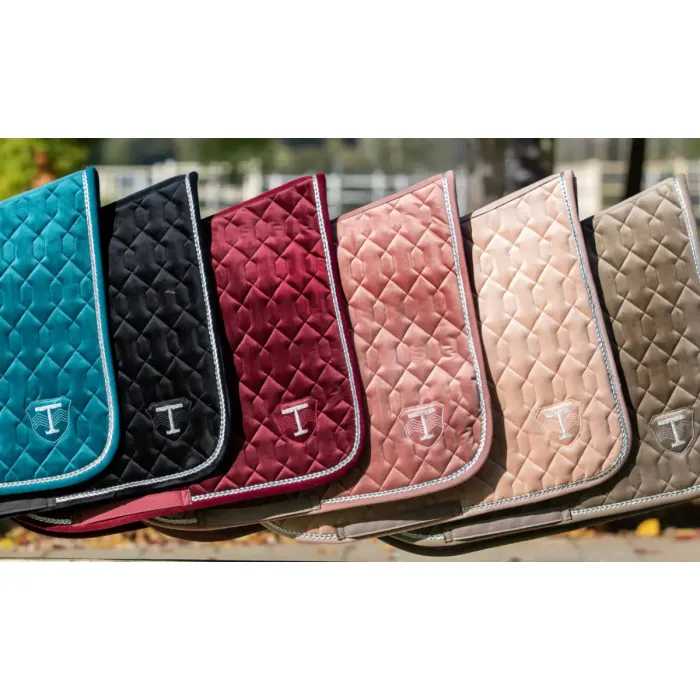 Torpol Royal Velvet powstał z wyjątkowo miękkiej dzianiny pluszowej Velvet, która zapewnia elegancki wygląd i przyjemne wrażenia dotykowe. Materiał ten prezentuje się szlachetnie i doskonale układa się na grzbiecie konia. Jest to idealna propozycja dla osób, które cenią zarówno estetykę, jak i jakość wykonania. Czapraki wykonane z tego typu tkanin świetnie komponują się z nowoczesnym sprzętem jeździeckim. Dodatkowo zapewniają komfort w użytkowaniu i wizualną spójność zestawu.