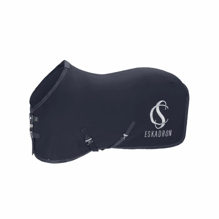 Derka Eskadron Waffle Coton Classic Sports S/S 2026 to wysokiej jakości derka dla konia, która łączy funkcjonalność z eleganckim wyglądem. Wykonana z bawełnianej piki waflowej o strukturze plastra miodu, zapewnia skuteczną wentylację i komfort użytkowania. Materiał wspiera odprowadzanie wilgoci, dzięki czemu świetnie sprawdza się jako derka osuszająca po treningu. Oddychająca konstrukcja pomaga utrzymać optymalną temperaturę ciała konia. Śliska podkładka na kłębie chroni przed otarciami i zwiększa wygodę noszenia. Stabilne mocowanie zapewniają podwójne zapięcie z przodu, pasy krzyżowe oraz sznurek ogonowy. Stylowe detale, takie jak haft i błyszczący sznurek lureksowy, podkreślają sportowy charakter produktu. To praktyczna i elegancka derka jeździecka, idealna do codziennego użytkowania.