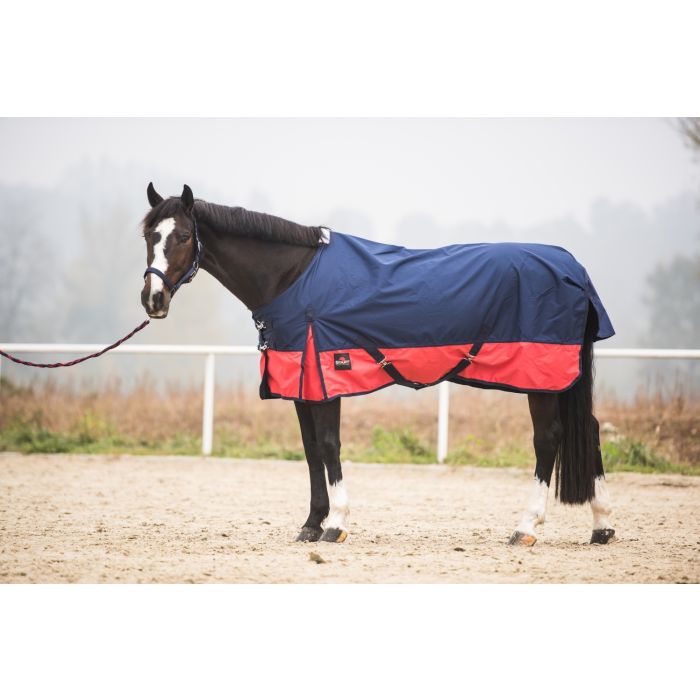 Padokowa derka bez wypełnienia. Wykonana z wodoodpornego i oddychającego materiału RipStop o gramaturze 600 DEN od wewnątrz podszyta polarem. Posiada rozcięcia na łopatkach zapewniające swobodę ruchów, z przodu podwójną regulację z możliwością szybkiego zapięcia. Pasy krzyżowe zapobiegające przesuwaniu się derki, odpinane pasy na nogi i klapę na ogon. Ozdobiona logiem START.
