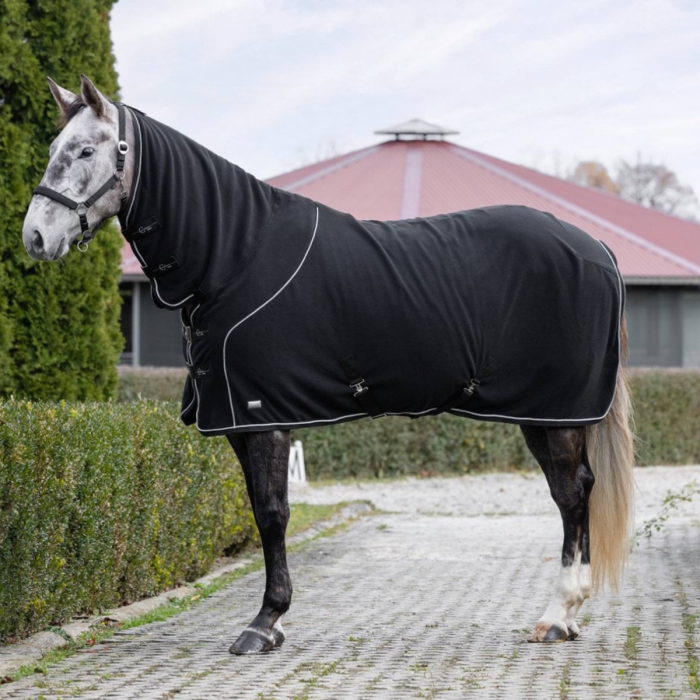 Dzięki oddychającemu i szybkoschnącemu materiałowi derka polarowa Covalliero Therm efektywnie odprowadza wilgoć i pot. Zapewnia komfort cieplny, chroniąc konia przed przegrzaniem oraz wychłodzeniem. To idealne rozwiązanie po treningach, kąpieli lub podczas chłodniejszych dni w stajni.