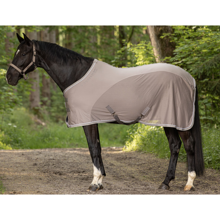 Górna część derki Covalliero S/S 2025 została wykonana z materiału, który efektywnie pochłania pot i zapobiega wychłodzeniu grzbietu. To szczególnie ważne po treningu lub intensywnym ruchu, gdy koń łatwo traci ciepło. Taka konstrukcja łączy zalety derki siatkowej z właściwościami derki transportowej. Dzięki temu koń zachowuje komfort termiczny, a ryzyko przeziębienia jest znacznie mniejsze. To praktyczne rozwiązanie, które wyróżnia ten model spośród innych derków siatkowych.