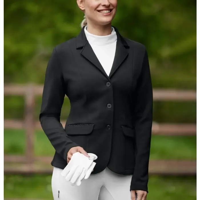 Frak ELT Lina łączy wygodę noszenia z ponadczasową elegancją, niezbędną na zawodach. Jego klasyczna forma i gustowne zdobienia przyciągają uwagę bez przesadnego przepychu. To idealny wybór dla każdej amazonki, która szuka fraka na zawody jeździeckie o wysokiej estetyce. Model doskonale wpisuje się w styl klasyczny, sprawdzając się zarówno w ujeżdżeniu, jak i skokach. Jest to frak jeździecki, który łączy wygląd z funkcjonalnością.