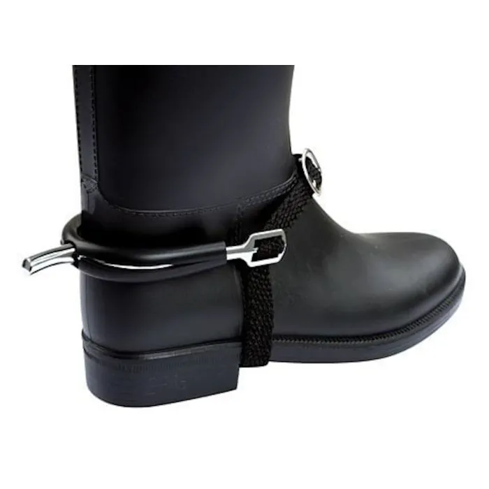 Ochraniacz zaprojektowano z myślą o jak najlepszym dopasowaniu do różnych kształtów ostróg. Elastyczny materiał dobrze przylega, nie przesuwając się podczas jazdy konnej. Takie rozwiązanie zwiększa komfort użytkowania i stabilność. Jest to szczególnie ważne w czasie intensywnych treningów. Dopasowanie zapewnia także estetyczny wygląd całego zestawu.