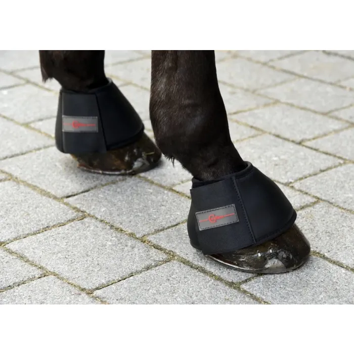Kalosze dla konia Covalliero Protecto zapewniają skuteczną ochronę kopyt przed urazami, otarciami i drobnymi skaleczeniami. Dzięki solidnej konstrukcji minimalizują ryzyko uszkodzenia delikatnej tkanki w okolicy koronki i piętek. To szczególnie ważne podczas intensywnych treningów i skoków, kiedy koń narażony jest na uderzenia. Kalosze dla koni Protecto sprawdzą się zarówno w stajni, jak i na zewnętrznych placach treningowych.
