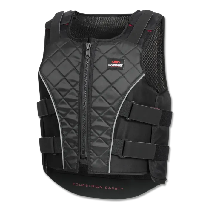 Kamizelka SWING P19 oferuje dorosłym jeźdźcom maksymalny poziom bezpieczeństwa, łącząc ochronę z wygodą. Dzięki wielowarstwowej budowie pianki, skutecznie redukuje siłę wszelkich wstrząsów i uderzeń, które mogą wystąpić podczas upadków czy nagłych manewrów konia. Ochronie podlegają kluczowe obszary ciała, w tym kręgosłup i klatka piersiowa. Odblaskowe paski dodatkowo zwiększają bezpieczeństwo podczas jazdy w terenie lub o zmierzchu. Solidna konstrukcja kamizelki daje użytkownikowi poczucie pewności w każdej sytuacji.