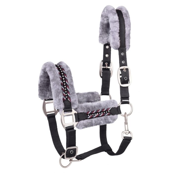 Bardzo elegancki kantar wykonany z mocnej pouliueratanowej taśmy Paski policzkowe, potyliczny oraz nachrapnikowy podszyte miękkim, wysokiej jakości sztucznym futrem Potrójnie regulowany Ozdobiony podwójnym sznurkiem i kryształkami Wytrzymałe okucia w kolorze satynowym