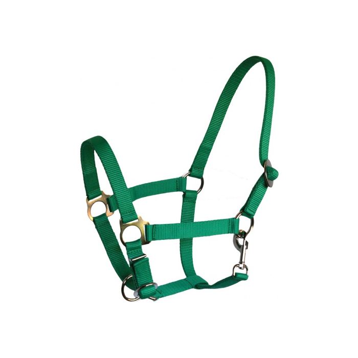 Wytrzymały kantar z podwójną regulacją. Okucia mosiądzowane. Wykonany z taśmy poliestrowej.