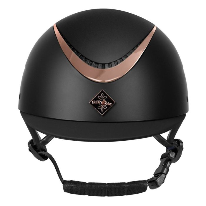 Kask jeździecki Fair Play Apoleus Rosegold to połączenie elegancji, bezpieczeństwa i nowoczesnej technologii. Dzięki aerodynamicznej konstrukcji i wykończeniu w odcieniu rosegold model prezentuje się stylowo, nie rezygnując z funkcjonalności. Wkładka z pianki memory zapewnia wygodę i idealne dopasowanie do kształtu głowy, a pokrętło regulacyjne oraz 3-punktowy system uprzęży zwiększają stabilność. Dyskretne otwory wentylacyjne z przodu i z tyłu wspierają cyrkulację powietrza, co przekłada się na komfort podczas jazdy. Kask został wykonany z materiałów o wysokim stopniu absorpcji uderzeń, wspieranych przez półkule absorpcyjne i wzmocnienia przeciw deformacjom bocznym. Spełnia normę VG1 01.040 2014-12, co potwierdza jego wysoką jakość i niezawodność.