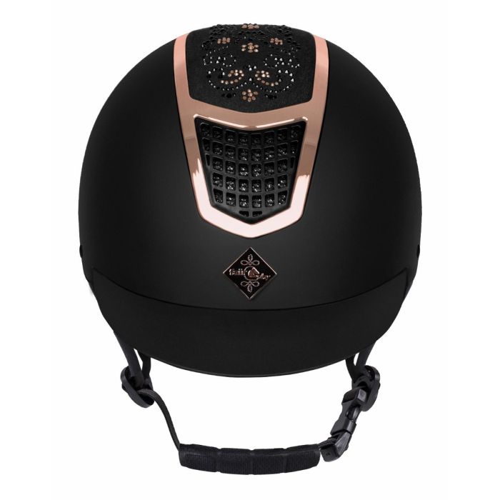 Kask jeździecki Fair Play Quantinum Chic 2.0 Rosegold to elegancka propozycja dla jeźdźców ceniących komfort, bezpieczeństwo i nowoczesny design. Wykończony w modnym stylu z detalami w odcieniu rosegold, wyróżnia się nie tylko estetyką, ale też funkcjonalnością. Dzięki wkładce z pianki memory, kask idealnie dopasowuje się do kształtu głowy, zapewniając wygodę nawet podczas długiej jazdy. Pokrętło regulacyjne oraz 3-punktowy system uprzęży umożliwiają precyzyjne dopasowanie i stabilne trzymanie kasku. Model ten oferuje również efektywną wentylację i elastyczny daszek, a odpinana wkładka przystosowana do prania ułatwia utrzymanie higieny na co dzień.