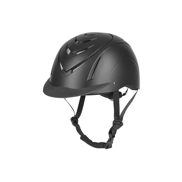 Kask jeździecki Covalliero Nerron to model łączący nowoczesny wygląd z funkcjonalnością, przeznaczony zarówno na treningi, jak i zawody. Charakteryzuje się aerodynamicznym profilem i eleganckim wykończeniem w kolorze czarno-perłowym, co nadaje mu stylowy i sportowy wygląd. Dzięki wygodnemu pokrętłu regulacyjnemu oraz systemowi klick, kask można precyzyjnie dopasować do obwodu głowy. To gwarantuje stabilność oraz komfort podczas jazdy. Dodatkową ochronę zapewnia twarda skorupa z elastycznym daszkiem, która dobrze znosi uderzenia i trudne warunki użytkowania.
