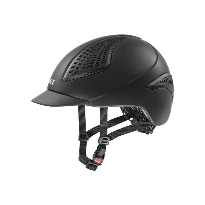 Kask jeździecki Uvex Exxential II to model, który łączy wysoki poziom ochrony z lekkością i komfortem noszenia. Wykonany w technologii inmould, zapewnia trwałość i skuteczną absorpcję wstrząsów, przy jednoczesnym zachowaniu niewielkiej wagi. Dzięki systemowi 3D IAS, kask można regulować w trzech płaszczyznach, co pozwala na idealne dopasowanie zarówno do obwodu, jak i wysokości głowy. Ręczna regulacja wentylacji, wyjmowana wyściółka oraz system FAS i MONOMATIC zwiększają funkcjonalność oraz wygodę codziennego użytkowania. Model dostępny jest w czterech kolorach i czterech rozmiarach obwodu, dzięki czemu łatwo dopasować go do indywidualnych potrzeb. Uvex Exxential II spełnia normę VG1 01.040 2014-12 i został wyprodukowany w Niemczech, co świadczy o jego jakości i precyzji wykonania.