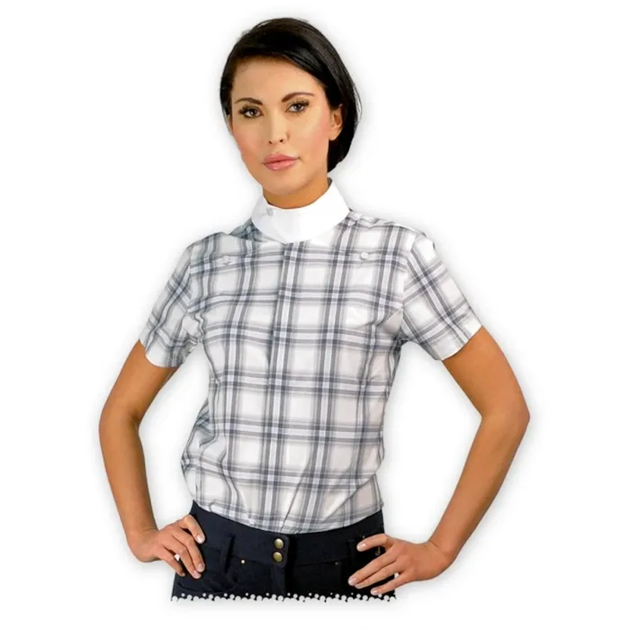Koszula konkursowa Fair Play Laura w kratkę to połączenie klasycznego stylu z nowoczesną funkcjonalnością. Wykonana z elastycznej tkaniny, dopasowuje się do ruchów ciała, co gwarantuje swobodę i wygodę podczas startów w zawodach. Fason idealnie podkreślający sylwetkę sprawia, że koszula świetnie prezentuje się pod frakiem lub marynarką jeździecką. Dodatkowym atutem jest kołnierzyk-stójka, który można rozłożyć i przypiąć po bokach – to praktyczne rozwiązanie, które pozwala dopasować koszulę do różnych stylizacji. Subtelny wzór kratki dodaje charakteru i przełamuje monotonię klasycznych białych modeli. To idealna propozycja dla zawodniczek poszukujących elegancji z nutą indywidualności.