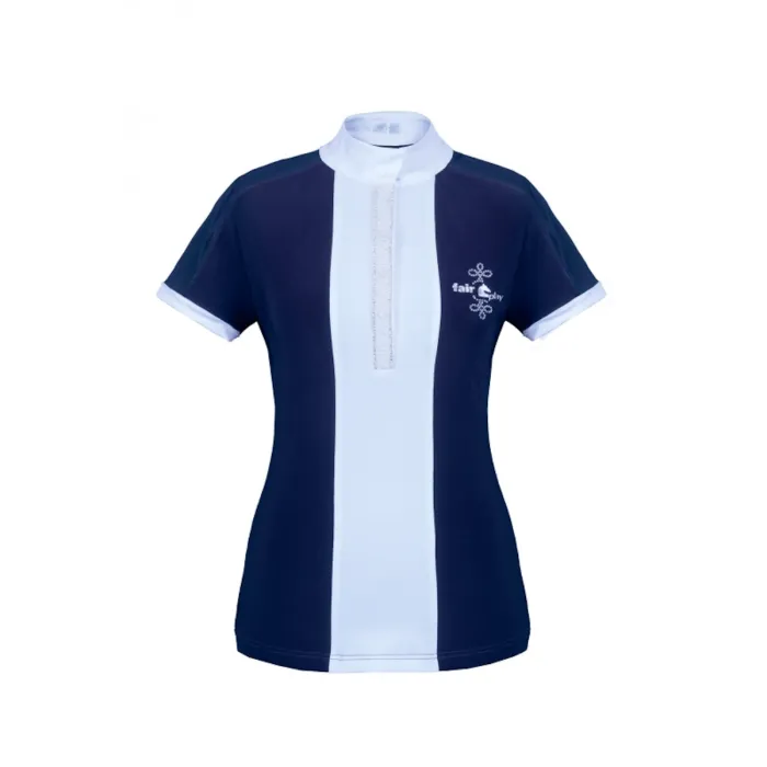 Koszulka konkursowa Fair Play Claire Pearl to połączenie technicznej funkcjonalności i subtelnej elegancji. Została wykonana z elastycznej, oddychającej dzianiny technicznej, która zapewnia swobodę ruchów i skuteczne odprowadzanie wilgoci podczas zawodów. Na rękawach umieszczono siateczkowe wstawki, które poprawiają wentylację i komfort w cieplejsze dni. Ozdobna plisa polo z perłową taśmą dodaje całości wyrafinowanego charakteru, dzięki czemu koszulka doskonale prezentuje się również pod frakiem. Model Claire Pearl został zaprojektowany z myślą o zawodniczkach ceniących zarówno wygodę, jak i estetykę stroju startowego. Idealna na sezon wiosenno-letni, szczególnie podczas zawodów w cieplejszych warunkach. Świetnie komponuje się z innymi elementami klasycznego jeździeckiego outfitu.