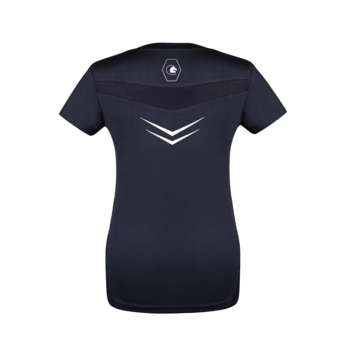 Koszulka damska Fair Play Encke to propozycja dla kobiet szukających lekkiej, przewiewnej i funkcjonalnej odzieży jeździeckiej na ciepłe dni. Model został wykonany z materiału o właściwościach oddychających, elastycznych i chroniących przed promieniowaniem UV, co sprawia, że idealnie sprawdza się w trakcie treningów w plenerze. Wstawki z siateczki z przodu i z tyłu oraz perforowane panele po bokach poprawiają wentylację, zapewniając komfort nawet przy intensywnym wysiłku. Koszulka jest także szybkoschnąca, co wpływa na wygodę użytkowania i ułatwia pielęgnację. Dopasowany krój gwarantuje swobodę ruchów i podkreśla sportową sylwetkę. To funkcjonalna i estetyczna koszulka jeździecka damska dla wymagających użytkowniczek.
