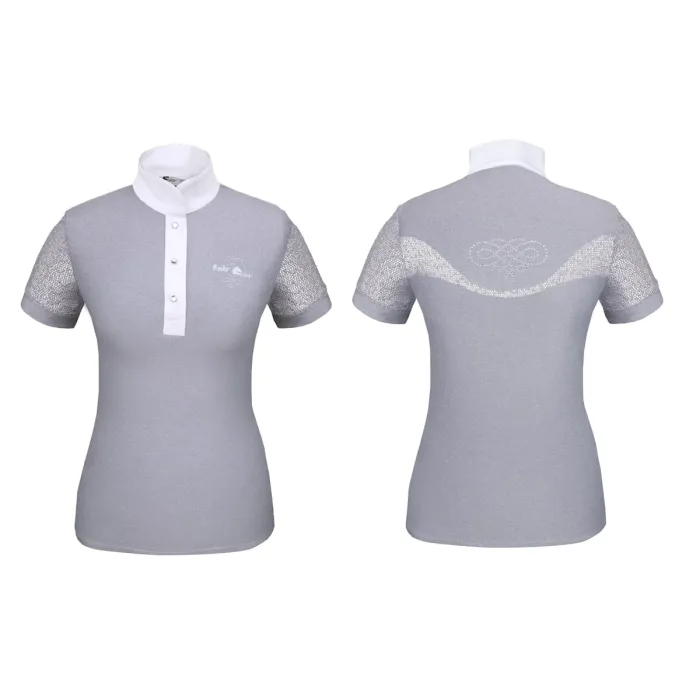 Koszulka konkursowa Fair Play Cecile 2.0 to połączenie elegancji i nowoczesnych rozwiązań technicznych, które doceni każda zawodniczka. Wykonana została z cienkiej, oddychającej dzianiny technicznej, zapewniającej wysoki komfort użytkowania nawet podczas intensywnego wysiłku. Materiał skutecznie odprowadza wilgoć i pozwala skórze oddychać, co przekłada się na uczucie świeżości przez cały dzień startowy. Model wyróżnia się zapięciem na kryształowe napy, które nadają całości delikatnego, ale efektownego wyglądu. Koszulka doskonale dopasowuje się do sylwetki i układa się pod frakiem, nie tworząc nieestetycznych fałd. To idealna propozycja dla jeźdźców ceniących komfort, funkcjonalność i subtelną elegancję.