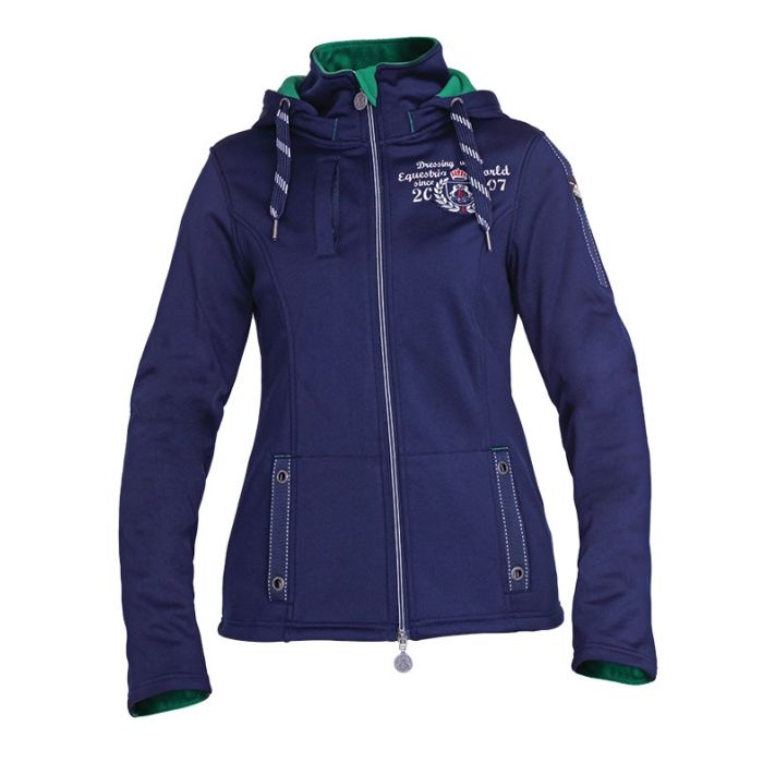 Kurtka damska Fair Play Jolly to praktyczne i stylowe rozwiązanie na chłodniejsze dni w stajni i poza nią. Wykonana z wysokiej jakości tkaniny typu softshell, łączy oddychalność, wodoodporność i wiatroszczelność, zapewniając komfort w zmiennych warunkach pogodowych. Wnętrze podszyte miękkim polarem gwarantuje przyjemne ciepło, a dwukierunkowy zamek zwiększa swobodę ruchów, zwłaszcza podczas jazdy konnej. Model posiada również głęboki, odpinany kaptur ze ściągaczami, co pozwala dostosować go do indywidualnych potrzeb. Dwie kieszenie na suwak pomieszczą niezbędne drobiazgi, a delikatne logo Fair Play dodaje całości sportowej elegancji. Kurtka doskonale sprawdzi się jako element codziennej garderoby aktywnej kobiety.