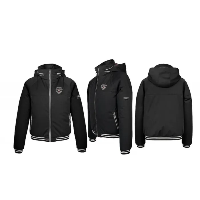 Kurtka została wyposażona w dwie kieszenie z przodu, zapinane na suwak, co pozwala bezpiecznie przechowywać niezbędne drobiazgi. Ich umiejscowienie sprawia, że są łatwo dostępne nawet podczas jazdy konnej. Zamki chronią zawartość przed zgubieniem i wilgocią. To rozwiązanie cenione przez osoby aktywne. Kieszenie podkreślają również użytkowy charakter kurtki.