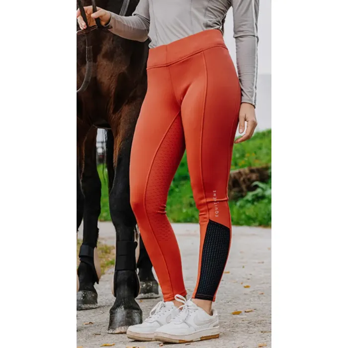 Legginsy jeździeckie EquiTheme Brigitte to połączenie funkcjonalności i wygody, stworzone z myślą o codziennych treningach. Dzięki wysokiemu pasowi zapewniają optymalne wsparcie i dobrze dopasowują się do sylwetki. Oddychająca i elastyczna tkanina gwarantuje komfort nawet podczas intensywnego wysiłku. Silikonowy lej poprawia przyczepność, zwiększając stabilność w siodle. Praktyczne detale, takie jak kieszeń na telefon z eleganckim wykończeniem i siateczkowe mankiety przy nogawkach, dodają użytkowości i nowoczesnego wyglądu. To idealne legginsy do jazdy konnej, które odpowiadają na potrzeby aktywnych amazonek.