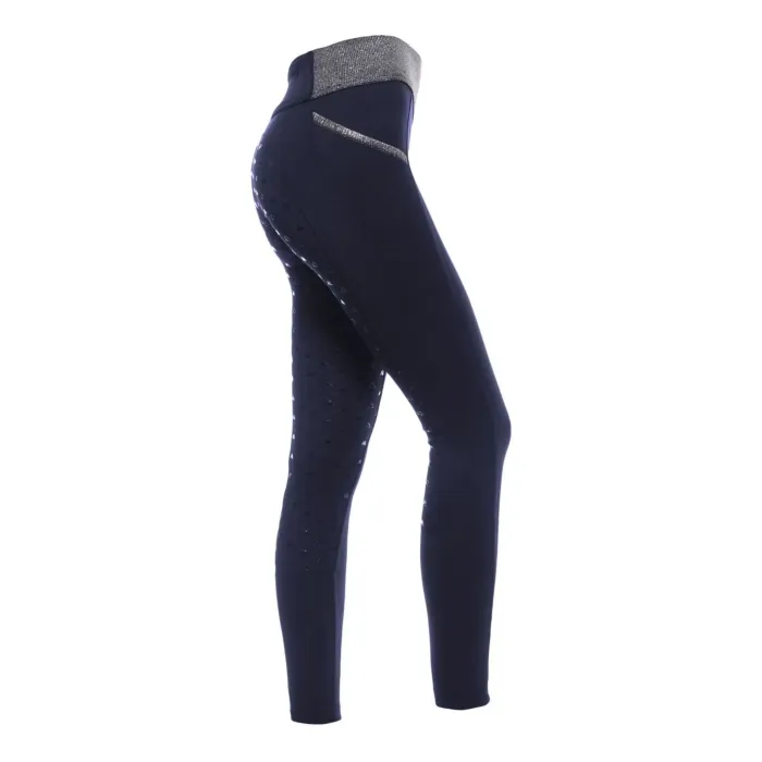 Legginsy damskie START Blackburn FullGrip to połączenie komfortu, elastyczności i eleganckiego stylu, zaprojektowane specjalnie dla kobiet aktywnie jeżdżących konno. Wykonane z wysokiej jakości, rozciągliwego materiału, doskonale dopasowują się do sylwetki i zapewniają pełną swobodę ruchów. Pełny lej silikonowy gwarantuje stabilność w siodle i świetną przyczepność, co przekłada się na bezpieczeństwo i wygodę podczas jazdy. Dwie praktyczne kieszenie z błyszczącą, srebrną lamówką dodają całości elegancji, a jednocześnie są funkcjonalnym miejscem na drobiazgi. Szeroka gumka w pasie ze srebrną nicią zapewnia idealne dopasowanie oraz komfort nawet podczas długiego użytkowania. W tylnej części pasa znajduje się mała kieszonka na zamek, przydatna na klucze lub drobiazgi. To nowoczesne legginsy jeździeckie, które łączą sportową funkcjonalność z kobiecym wyglądem.