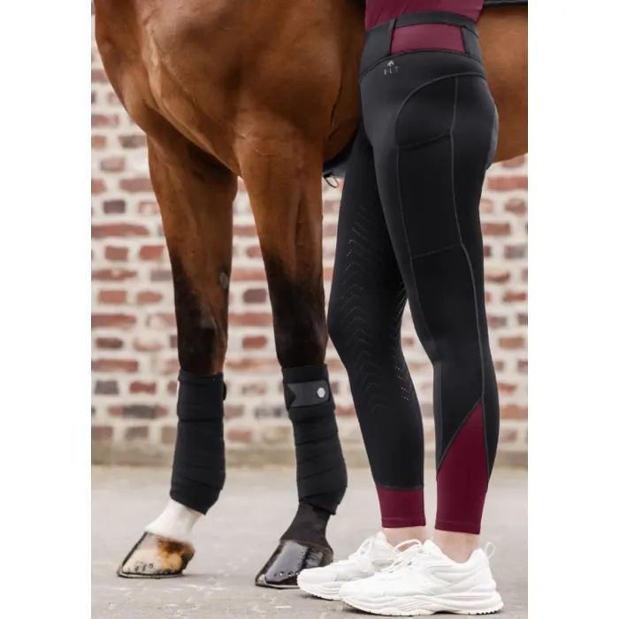 Elastyczne mankiety przy nogawkach legginsów ELT Noemi ułatwiają zakładanie i idealnie dopasowują się do łydki, bez tworzenia zgrubień pod butem. Ich kontrastowy kolor dodaje sportowego stylu i podkreśla nowoczesny charakter modelu. Mankiety nie uciskają, a jednocześnie utrzymują legginsy na właściwym miejscu przez cały dzień. To wygodne rozwiązanie podczas jazdy i pracy w stajni. Legginsy do jazdy konnej z elastycznymi wykończeniami zapewniają pełną swobodę.