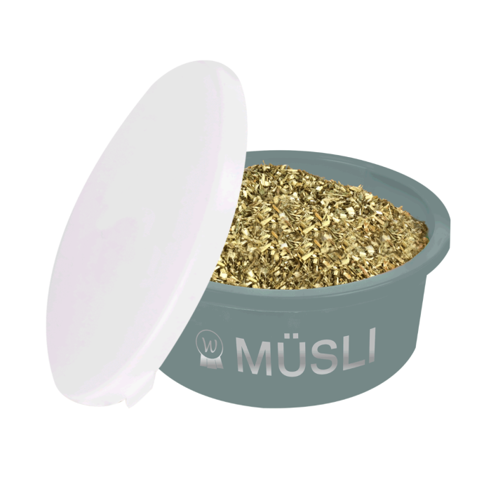 Wysokiej jakości, solidna miska na musli z pokrywką. Chroni przed myszami. Na wieczku można pisać. Wykonane z tworzywa sztucznego przeznaczonego do kontaktu z żywnością. Wyprodukowano w Niemczech. Wymiary: wys.: 13 cm, Ř: 30 cm. Pojemność: 5 l.