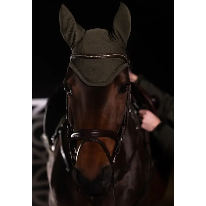 Na przodzie nauszników umieszczono subtelne, wyhaftowane logo Eskadron, które stanowi znak rozpoznawczy marki. Ten detal nie tylko podkreśla wysoką jakość produktu, ale także nadaje mu eleganckiego i nowoczesnego charakteru. Haft jest trwały i odporny na codzienne użytkowanie, dzięki czemu nauszniki zachowują swój wygląd przez długi czas. W połączeniu z dynamicznym krojem całość prezentuje się bardzo stylowo. To świetne uzupełnienie zestawu jeździeckiego z czaprakami z tej samej kolekcji. Takie nauszniki dla konia są jednocześnie funkcjonalne i estetyczne.