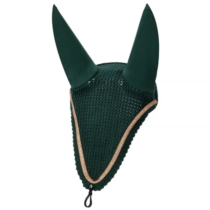 Nauszniki jeździeckie Equestrian Queen Milan to połączenie klasycznej formy z nowoczesnymi detalami. Wykonane z miękkiej, naturalnej bawełny, są długie i dobrze zakrywają uszy, zapewniając koniowi skuteczną ochronę przed owadami i hałasem. Elastyczne uszy zapewniają wygodne dopasowanie, nie krępując naturalnych ruchów. Dodatkowym atutem jest błyszcząca lamówka glitter, która nadaje całości subtelny, dekoracyjny charakter. Zintegrowana gumka i guzik umożliwiają łatwe i stabilne przypięcie nauszników do ogłowia, co zwiększa ich funkcjonalność podczas jazdy. To nauszniki dla koni, które łączą estetykę z codzienną wygodą użytkowania. Sprawdzą się zarówno w treningu, jak i na zawodach.