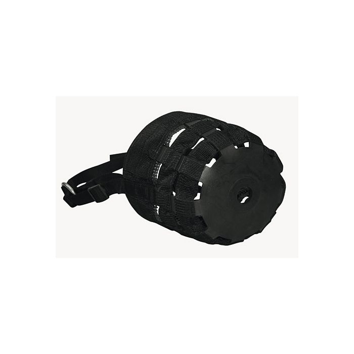 Zapobiega zbyt szybkiemu jedzeniu na pastwisku. Z wytrzymałego nylonu ze wzmocnieniem w obszarze pyska. Łatwe zakładanie.