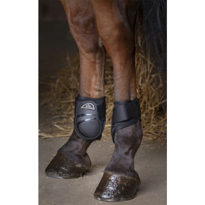 Regulowane elastyczne paski z mocnymi taśmami samoprzylepnymi pozwalają na szybkie i wygodne zakładanie oraz idealne dopasowanie ochraniaczy do końskiej nogi.